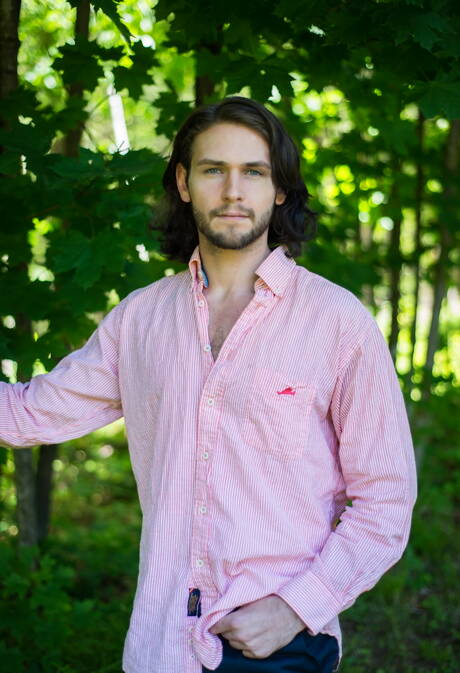 Icon Male: Der haarige amerikanische Hengst Duncan Black spielt im Freien mit seinem Schwanz