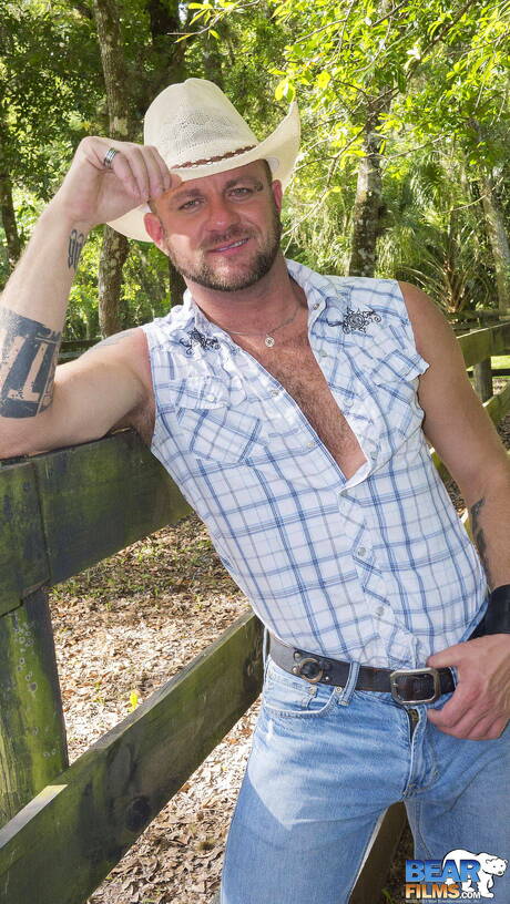 Bear Films: Der amerikanische Kraftprotz Christian Matthews wichst seinen Schwanz draußen