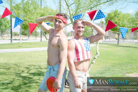 Man Royale: Der gut gebaute Amerikaner Cayden Stone und der starke Mann Beau Maddox ficken nach dem Blowjob im Freien