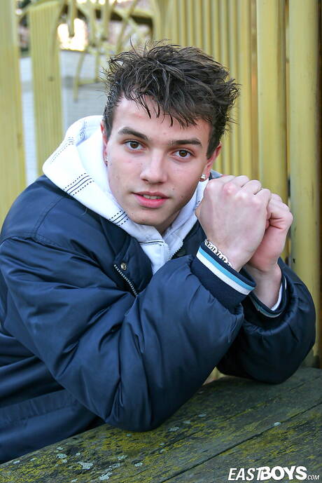 East Boys: Der bullige Aurel posiert nackt und zeigt seinen Hintern draußen