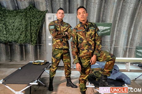 Military Dick: Der bullige Faisul Bittar und der schöne Latino Giorgio Angelo ficken nach dem Blowjob