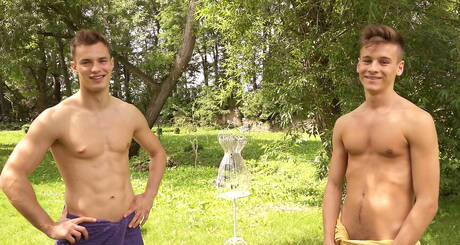 Belami Online: Der muskulöse Tscheche Hoyt Kogan und der starke Mann Frederick Perin masturbieren im Freien