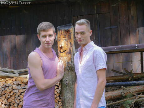 Boyfun: Der tschechische Twink Karl Stevens und der slowakische Junge Nico Vegas ficken in den Arsch, nachdem sie draußen einen Schwanz gelutscht haben