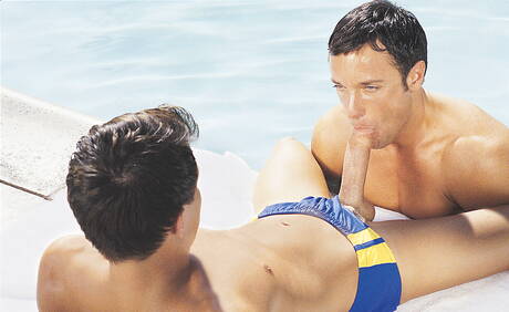 Falcon Studios: Die geilen Jungs Peter Wilder, David Bradley und Spike haben sich am Pool gegenseitig geknallt
