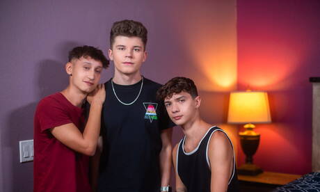 Helix Studios: Die geilen Jungs Sam Ledger, Noah Bentley und Silas Brooks bei einem heißen Dreier-Arschfick