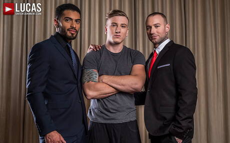 Lucas Entertainment: Die geilen Kumpels Angel Duran, Dylan James und Tom Faulk bei einem heißen interracial Dreier-Arschfick