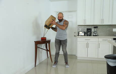 Gaywire: Die geilen Typen Atlas Grant, Cameron Basinger und Sir Jet beim harten Dreiersex in der Küche