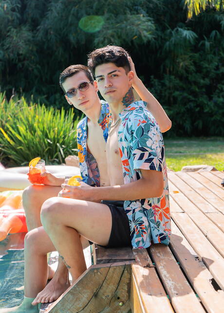 Helix Studios: Die geilen Typen Audrey Jones, Cesar Rose und Felix Harris beim heißen Dreier-Arschfick am Pool