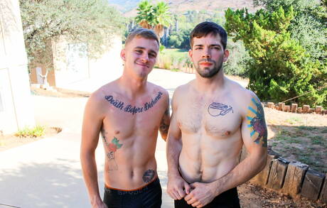 Chaosmen: Heiße amerikanische Jungs Otter Julian Brady und heißer Twink Ryan Jordan haben einen guten Oralsex draußen