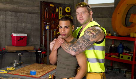 Men: Heiße amerikanische Jungs, der heiße Bär Colby Jansen und der bullige Trelino ficken nach einem interracial Blowjob