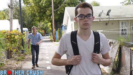 Brother Crush: Die heißen amerikanischen Twinks Alex Meyer und Darron Bluu ficken sich in den Arsch, nachdem sie draußen Schwänze gelutscht haben