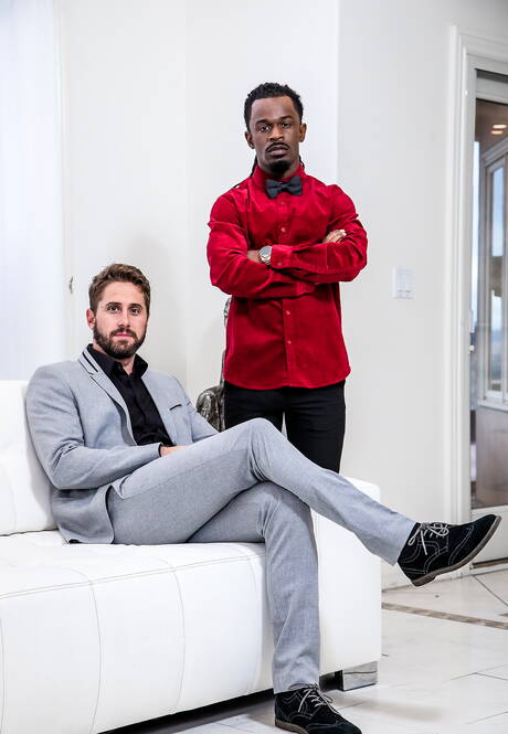 Noir Male: Heiße Amerikaner, der harte Kerl Wesley Woods und der muskulöse Fame in Schwarz auf Weiß lieben