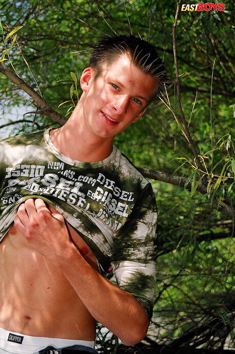 East Boys: Der heiße Twink Radwan posiert nackt draußen