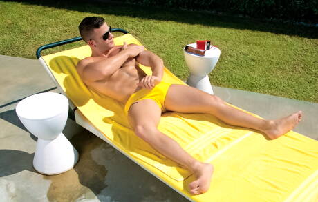Falcon Studios: Der kräftige Latino Angel Rock neckt seinen Schwanz draußen