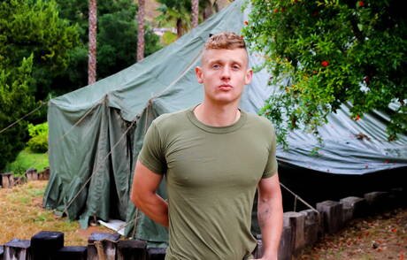 Active Duty: Der muskulöse Derrick Ranoldo posiert nackt im Freien