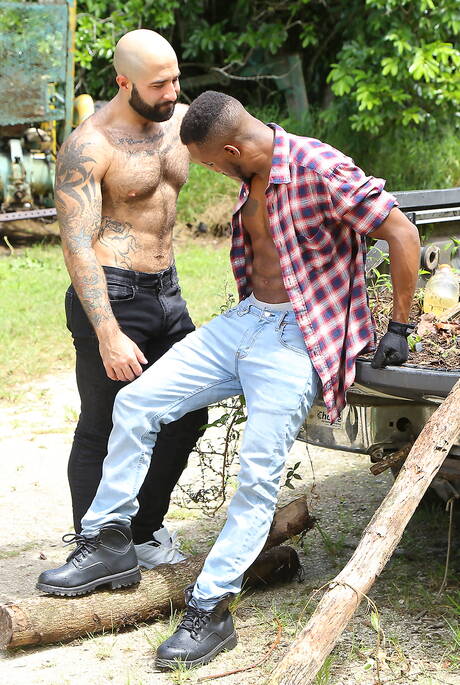 Gaywire: Nette amerikanische Jungs, der heiße Bär Atlas Grant und der bullige Pheonix Fellington beim Analsex im Freien