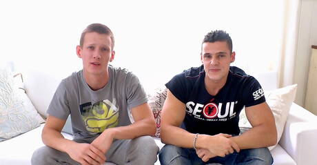 Belami Online: Der slowakische harte Kerl Manuel Rios und der tschechische Schönling Alec Rothko in einer Blowjob-Szene