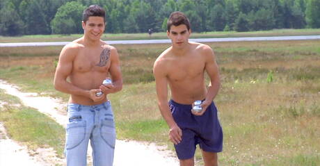 Belami Online: Der Hengst Maxim Moira und der Adonis Randy Black lutschen und ficken sich gegenseitig im Freien