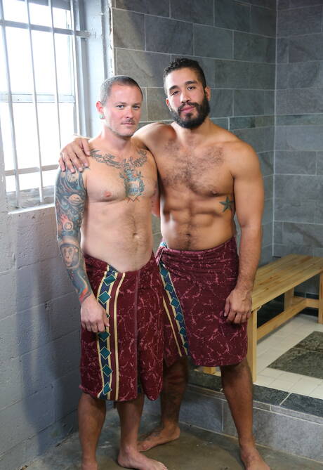 Pride Studios: Zwei amerikanische Jungs, der gut gebaute Trey Turner und der bullige Max Cameron, bei heißer Arschfick-Action in der Badewanne
