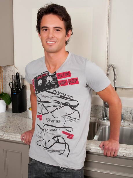 Randy Blue: El semental peludo americano Donny Wright se masturba en la cocina