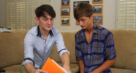Helix Studios: El jovencito estadounidense Andy Kay y el guapo Zack Love en una escena homosexual caliente en la piscina