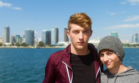 Helix Studios: Los guapos chicos estadounidenses Cole Claire y el joven Cameron Parks se divierten teniendo sexo anal en la piscina.