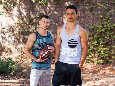 Randy Blue: Le beau mec américain Brett Swanson et Ezra Finn ont une scène de couple torride en extérieur