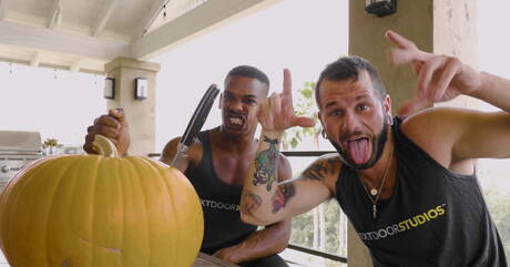 Next Door Studios: Les stars du porno américaines Johnny Hill et Adrian Hart, un homme costaud, se livrent à une sodomie interraciale intense.