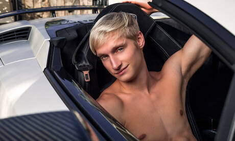 Helix Studios: Les stars du porno américaines Kyle Ross et Max Carter, musclés, posent nus et montrent leurs belles fesses à la piscine