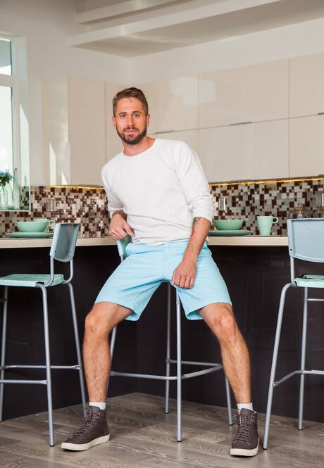 Noir Male: Les stars du porno américaines Wesley Woods et l'étalon Pheonix Fellington dans une scène de fellation interraciale dans la cuisine