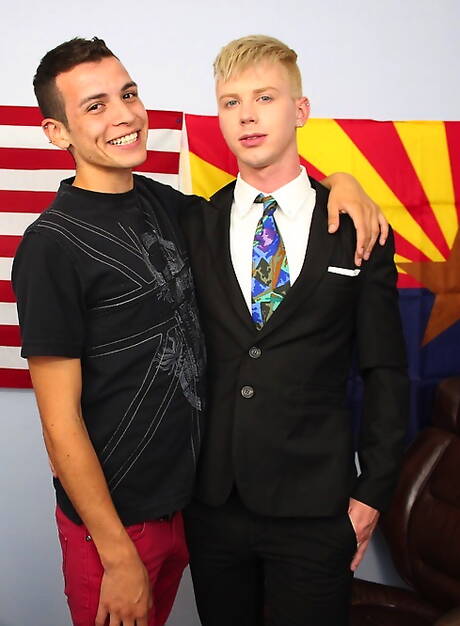 Helix Studios: Le jeune américain Kyler Ash et l'étalon Aaron Stang dans une scène homosexuelle torride