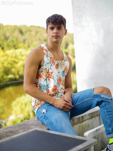 Boyfun: Le jeune tchèque Finn Harper pose nu et montre ses fesses serrées à l'extérieur