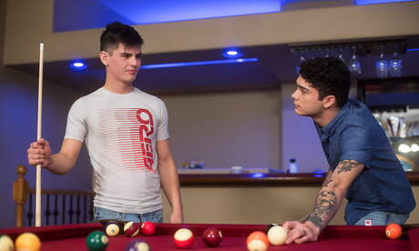 Helix Studios: Les beaux mecs américains Seth Peterson et le minet Ashtin Bates dans une scène homosexuelle torride