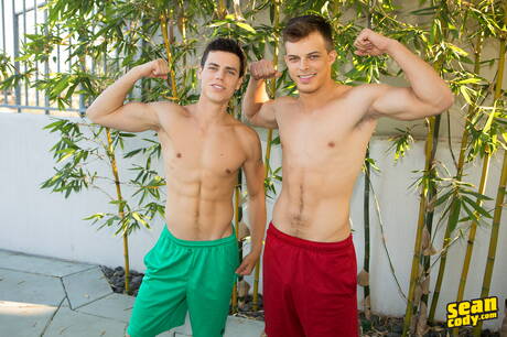 Sean Cody: Le beau mec Jayden et le beau roumain Kaleb Stryker ont une bonne relation sexuelle à la piscine