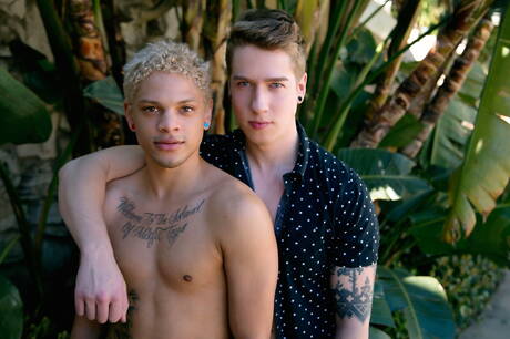 Cocky Boys: Le musclé Elliot Blue et le jeune américain Lukas Grande dans une action de baise anale interraciale torride en extérieur