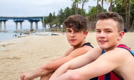 Helix Studios: Les gentils copains américains Andy Taylor et l'étalon Logan Cross ont une bonne relation sexuelle avec fisting sur la plage