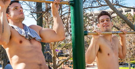 Men: Les beaux mecs américains Michael Delray et le costaud Nate Grimes font l'amour dehors