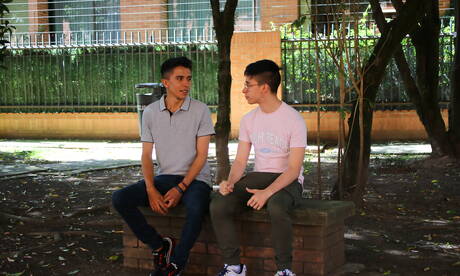 Helix Studios: Le beau garçon Jonathan Lando et le beau garçon argentin Antu Burghos baisent après une fellation à l'extérieur