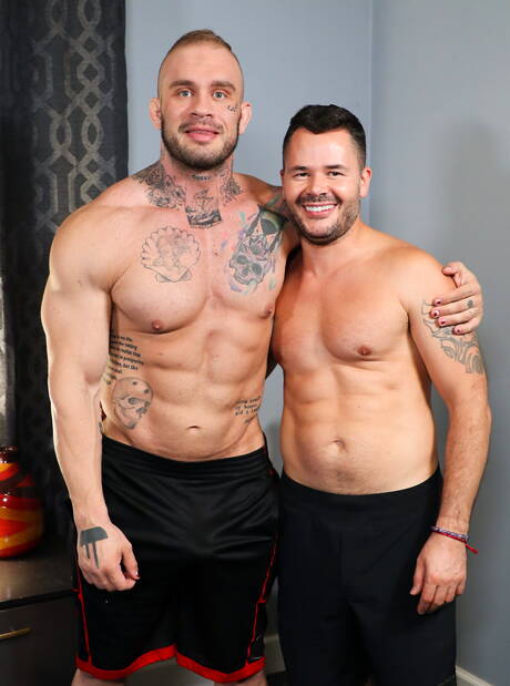 Chaosmen: Le beau gosse russe Valentin Petrov et le musclé américain Davin Strong baisent le cul après avoir sucé une bite