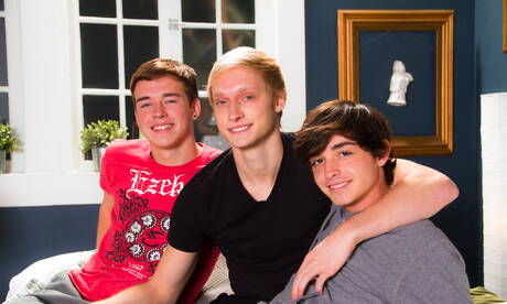 Helix Studios: Les copains sexy Max Carter, Troy Ryan et Grayson Lange dans une partie de sexe anal torride à trois