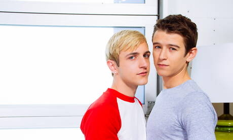 Helix Studios: Deux garçons américains, le jeune Evan Parker et le minet Colby Klein dans une scène homosexuelle torride