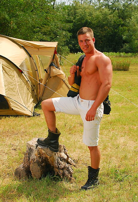 Visconti Triplets: Jeffry Branson, bien bâti, se déshabille et montre ses fesses en extérieur