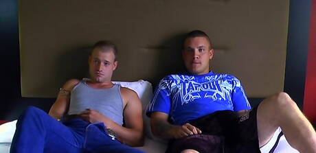 Active Duty: Nick bien bâti et Bruce l'homme fort dans une scène de fellation
