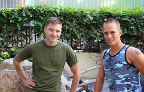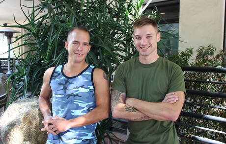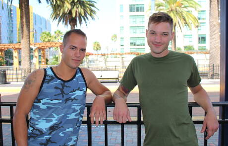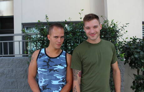 American beefy Richard Buldger and beautiful boy Jaxon D fuck after blowjob outside