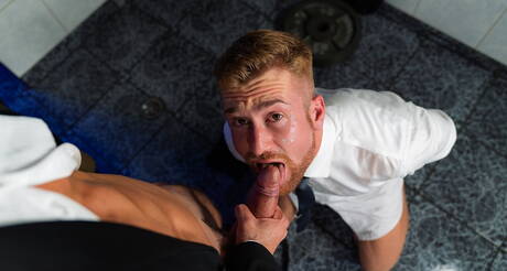 American bodybuilder Brent Diggs and strongman Cameron Michaels in cock sucking scene