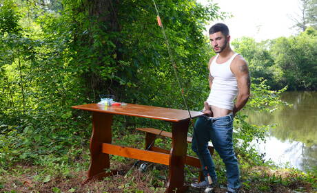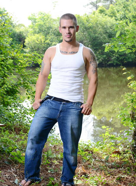 American husky guy Adam Bryant and russian beefcake Vadim Black have a hot sex outside
