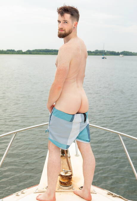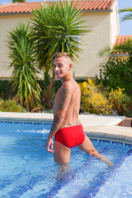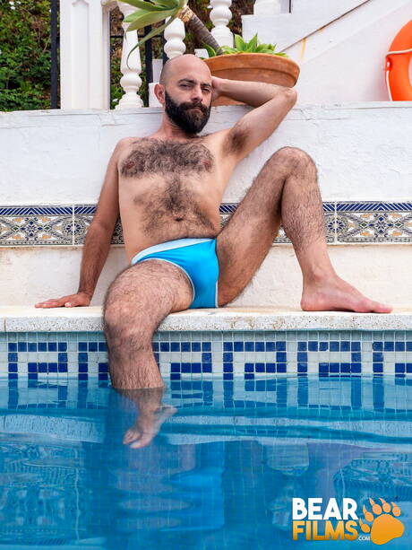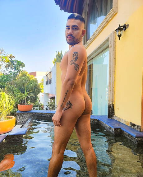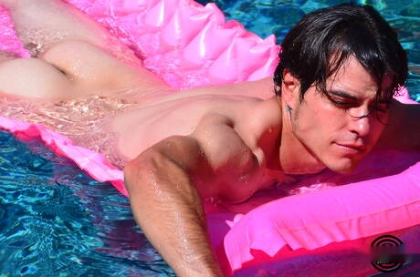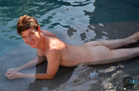 American otter Carlos Verga posing nude and showing nice ass at the pool