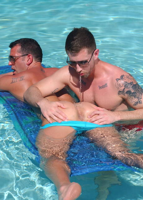 American pornstars husky guy Connor Maguire and stud Bryan Cole in hot anal sex at the pool
