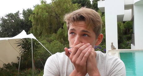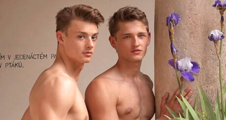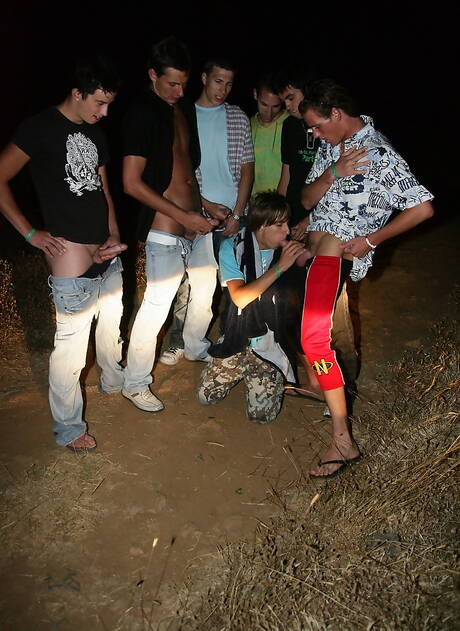 American pretty boy Jarrod Lanvin and czech hunky guy Matthieu Pique in cock sucking scene outside