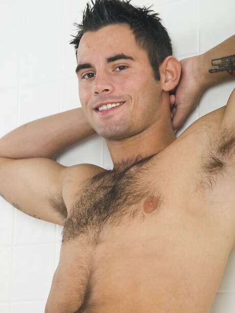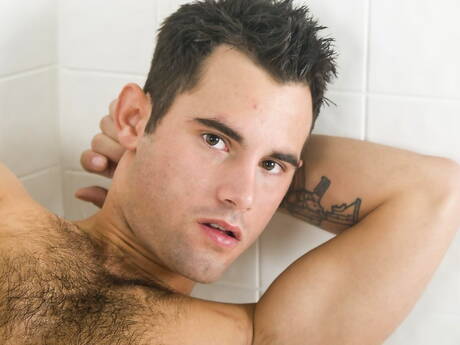 American strong bull Lucas Vick play with dildo in hot shower